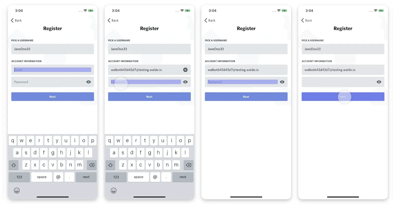 Relevant info: Give participants fake account details, including email addresses for the verification email to be sent to.