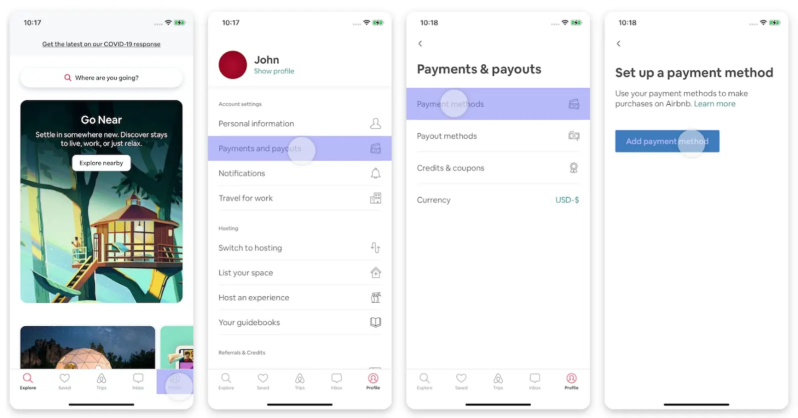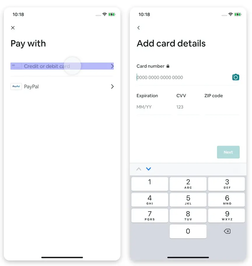 Task scenario: You recently set up an Airbnb account and must include your payment details.