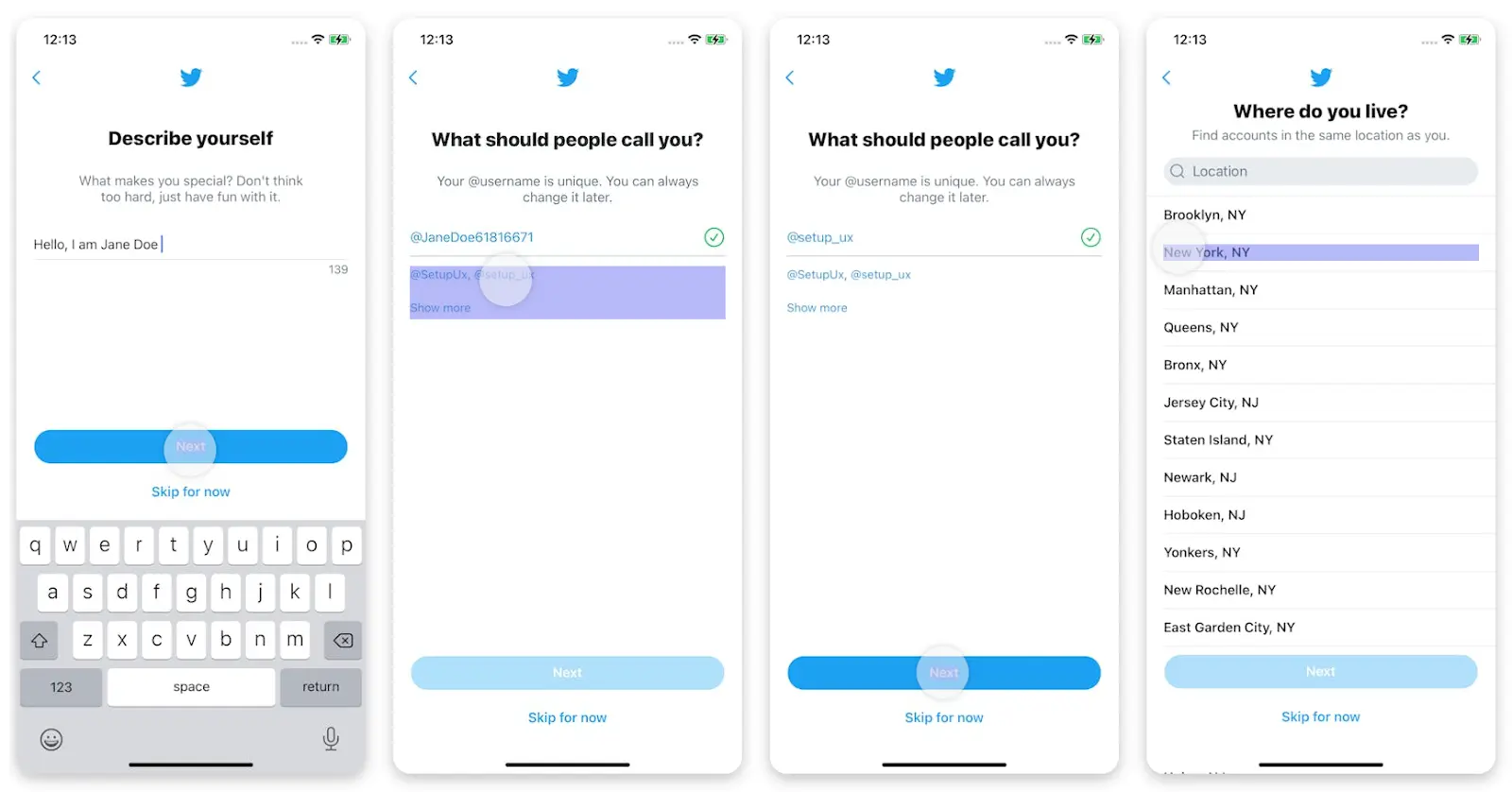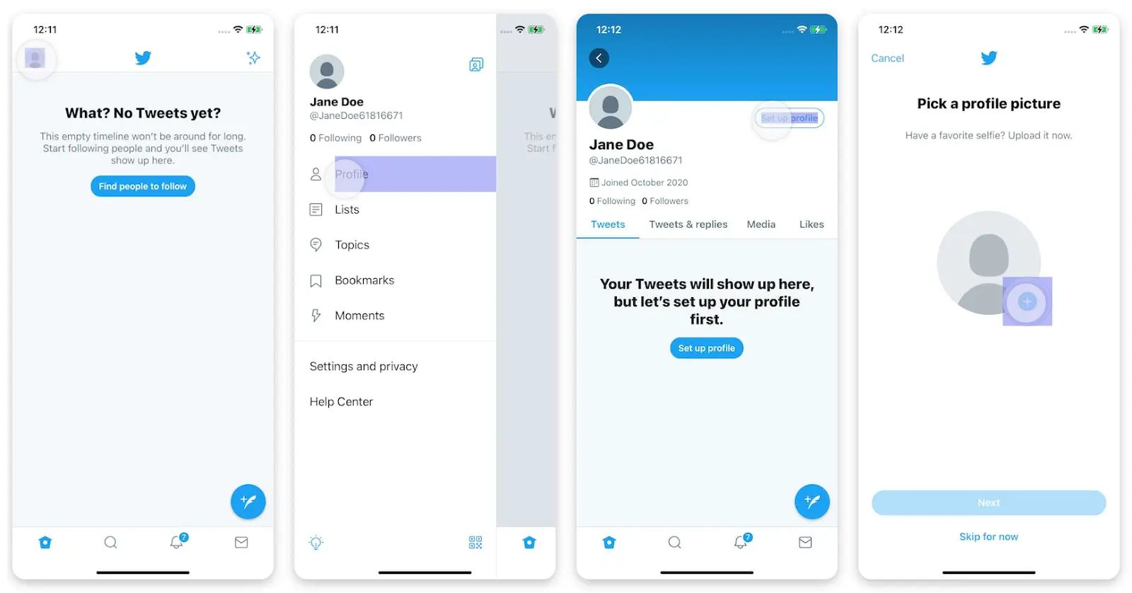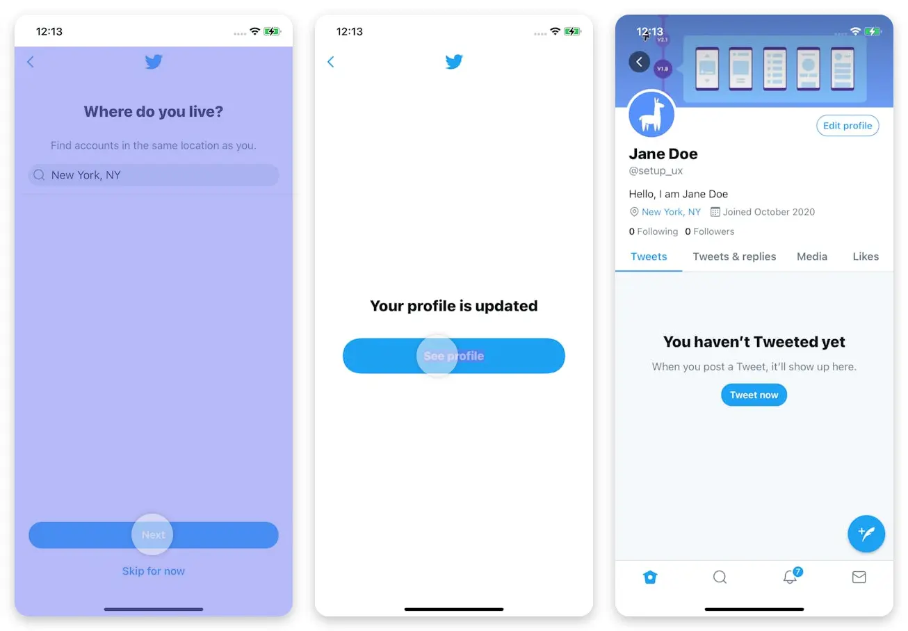 Task scenario: You must complete the account setup for your Twitter account.