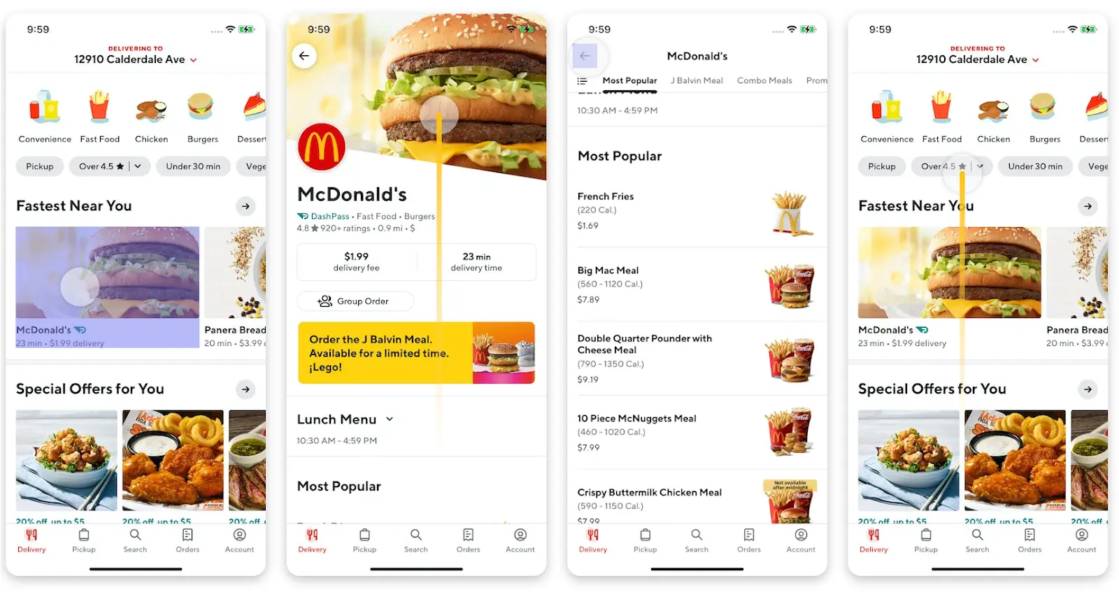 Context: You’ve never used DoorDash before but would like to see the popular fast-food options nearby.