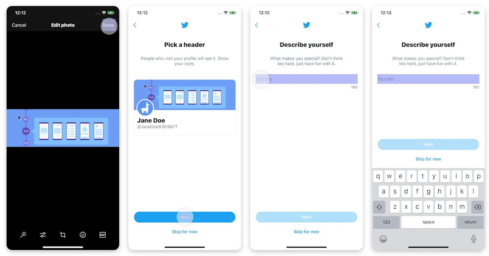 Context: When you sent up your Twitter account a few weeks ago, you didn’t have time to complete all the details. You’d now like to include your profile picture, a header, and a description.