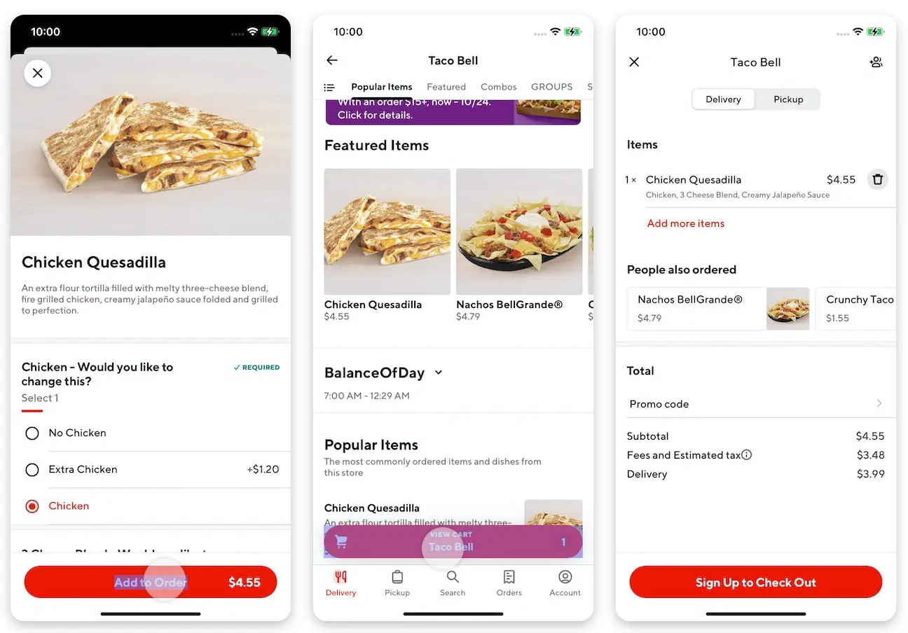 End state: Users will see the option to sign up for DoorDash to complete their order.