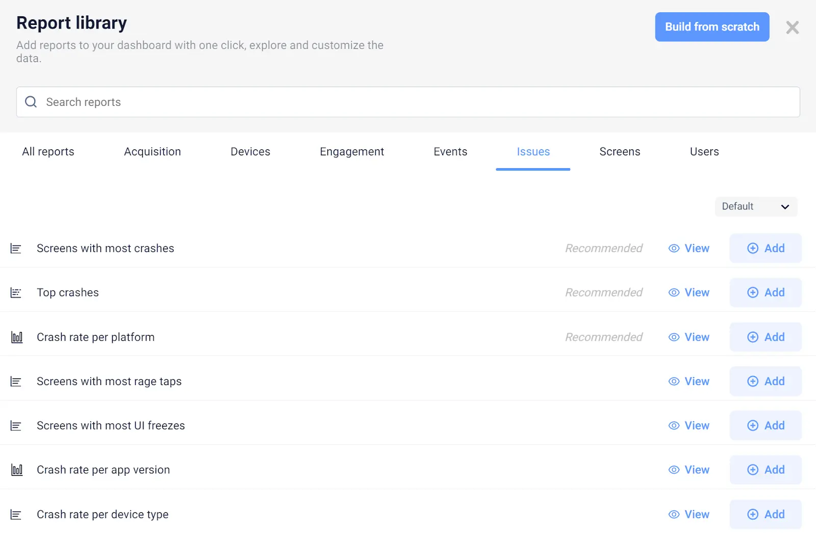 Building a dashboard with these reports is a great way to monitor your app’s performance and troubleshoot any issues that may arise. By including reports that target specific platforms or device types, you can identify and resolve issues that may only affect a certain group of users.