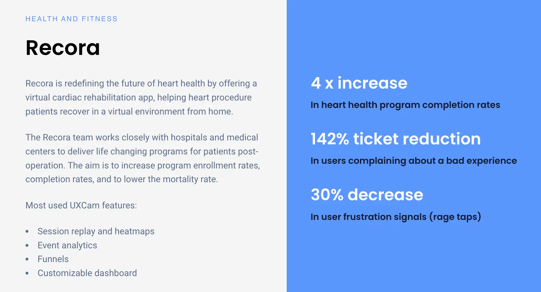 Every product has quirks that annoy users. Usually, they aren’t dealbreakers on their own… but lots of little annoyances can add up to lost customers pretty quickly. This is an issue that Recora ( a virtual cardiac recovery app) faced head on.