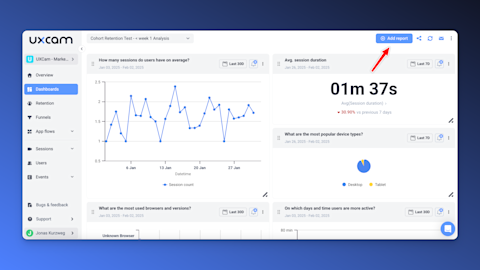 First, open your UXCam Dashboard and click on "Add Report".