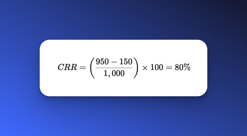 For example, if you started the month with 1,000 users, acquired 150 new ones, and ended with 950, your CRR would be: