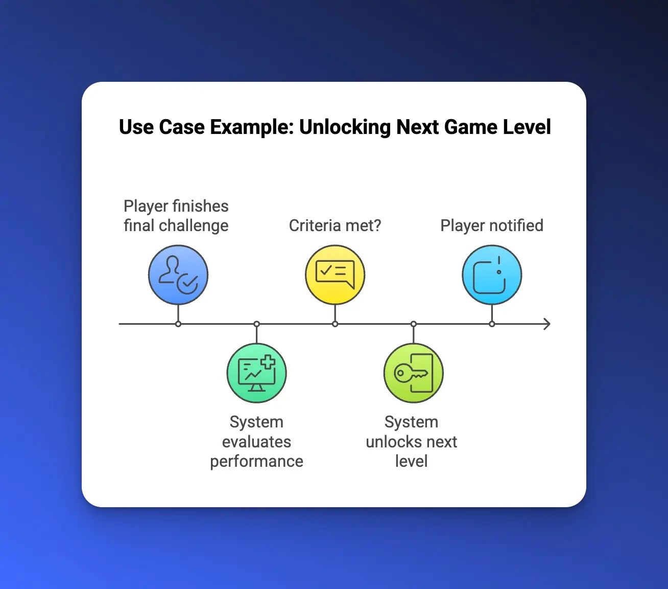In the gaming world, a use case like this helps ensure the logic behind level progression is clear, testable, and scalable.