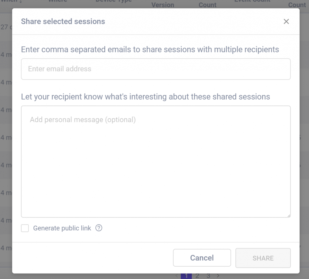 You can now share sessions directly from the dashboard. You also have the option to attach a personal message for context.