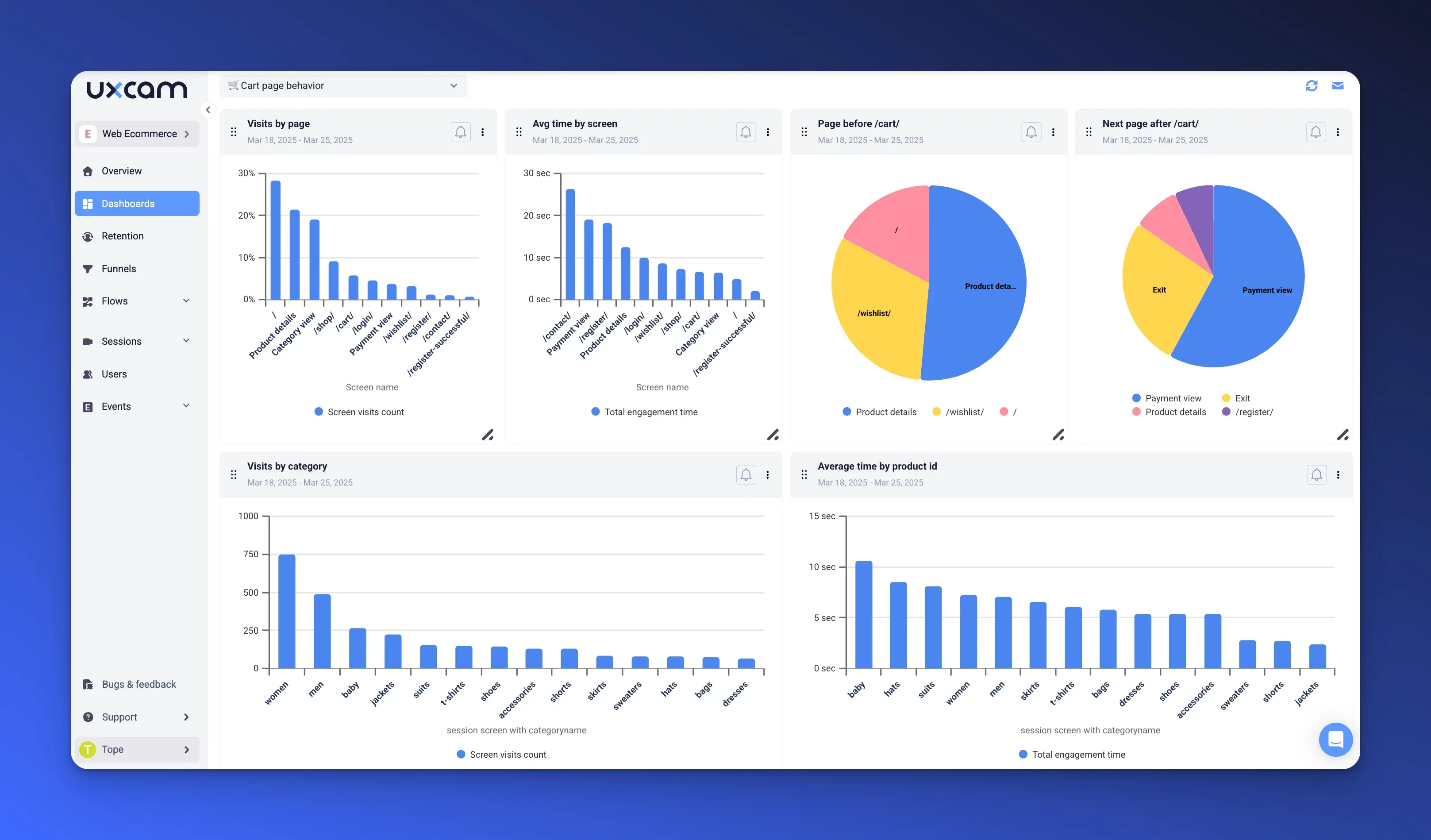 Among the available tools, UXCam Web Dashboards stand out by offering specialized, user-centric insights. They go beyond mere metric tracking to provide actionable data that can significantly improve user experience and conversion rates.