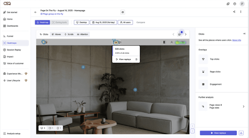 Heatmaps: Visualize where users click, scroll, and focus most on your web pages.