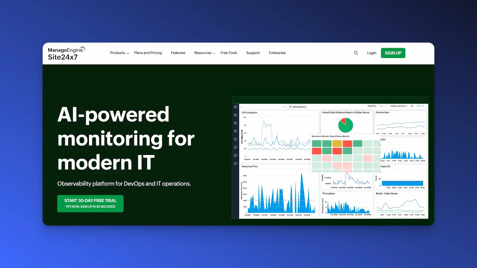 Site24x7 is an all-in-one website monitoring tool that tracks your site’s performance, uptime, and user experience. It provides comprehensive monitoring for websites, servers, and applications, making it ideal for businesses seeking a versatile solution.