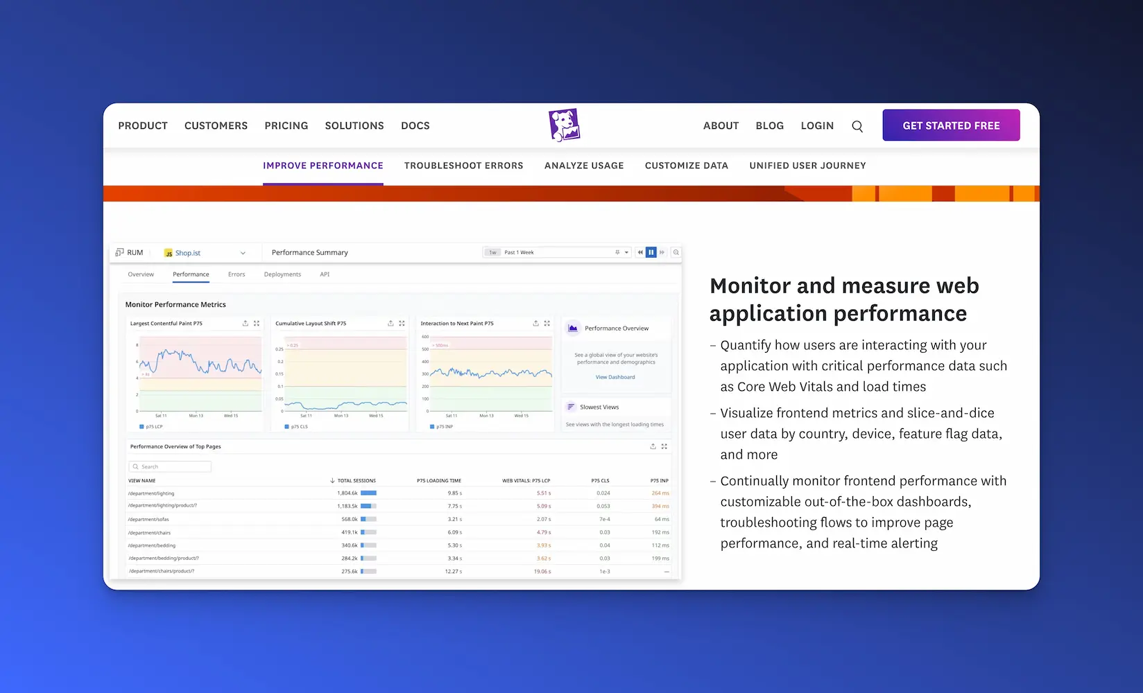 Datadog offers features to give you real-time data and deep insights into your website’s stability: