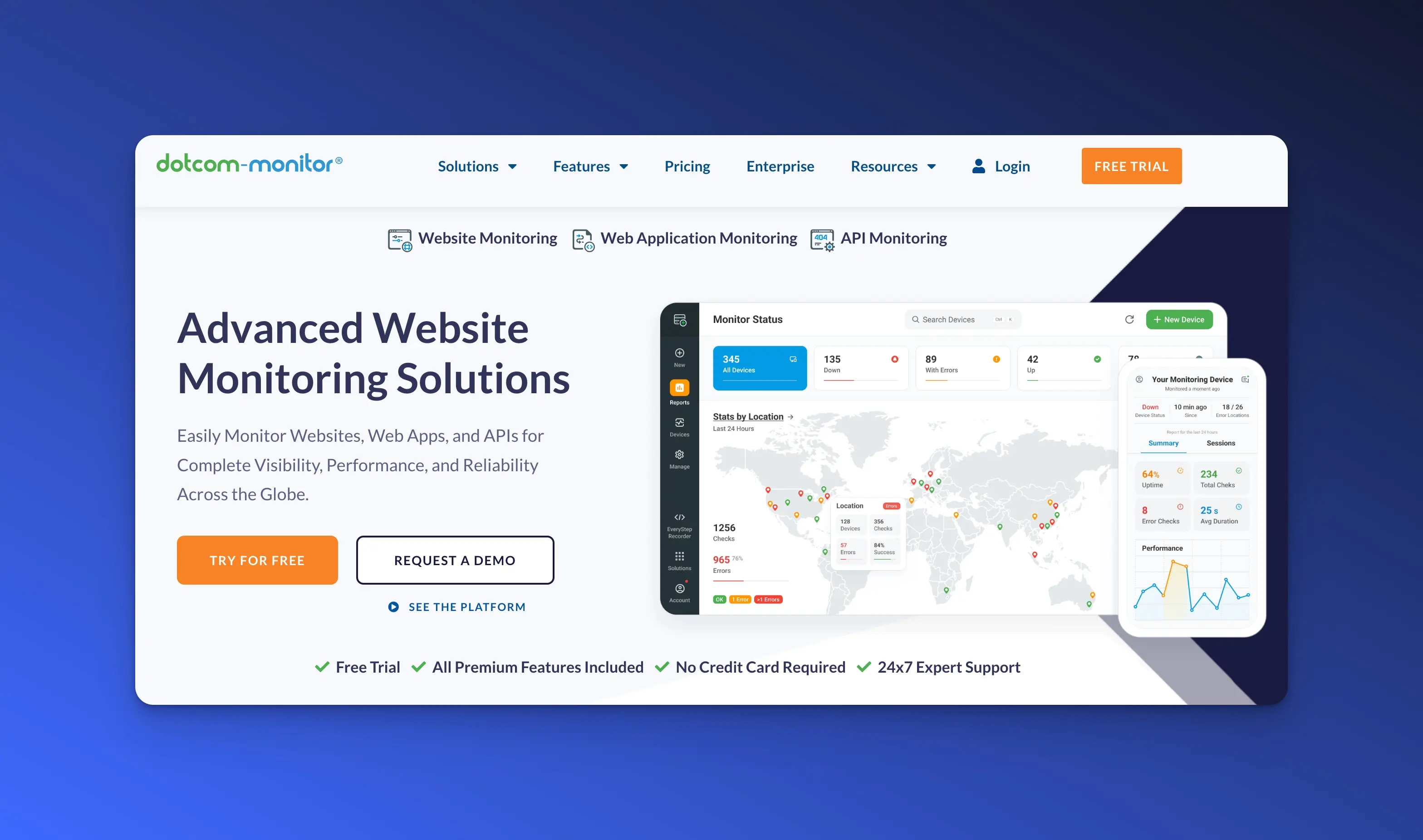 Global uptime monitoring: Tracks availability from multiple global locations.