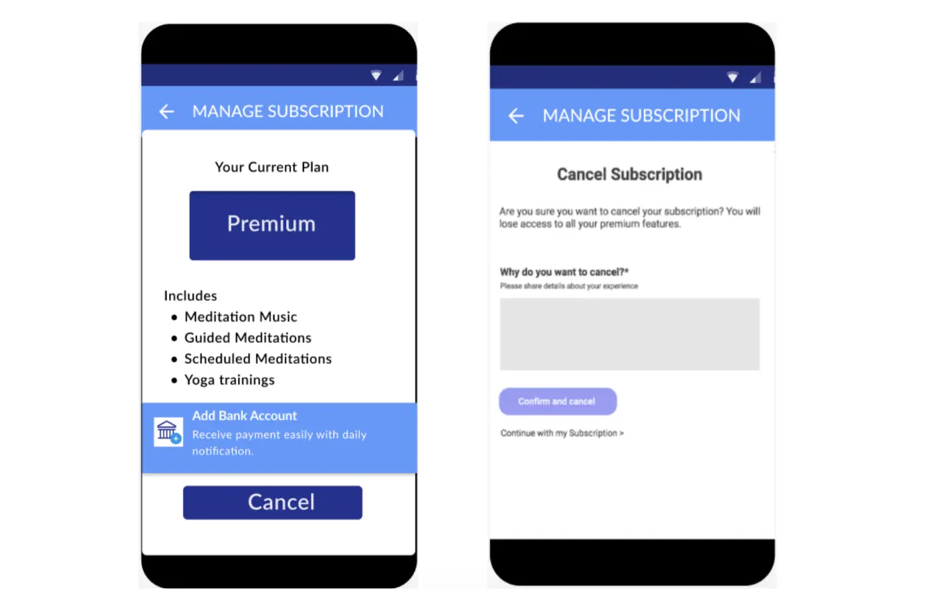 For example, Brainspace used UXCam to understand why users cancel their subscriptions and how they can restructure the process to mitigate churn. They reviewed the cancellation steps users took to terminate their subscriptions and identified the top reason for recent users’ cancellations.