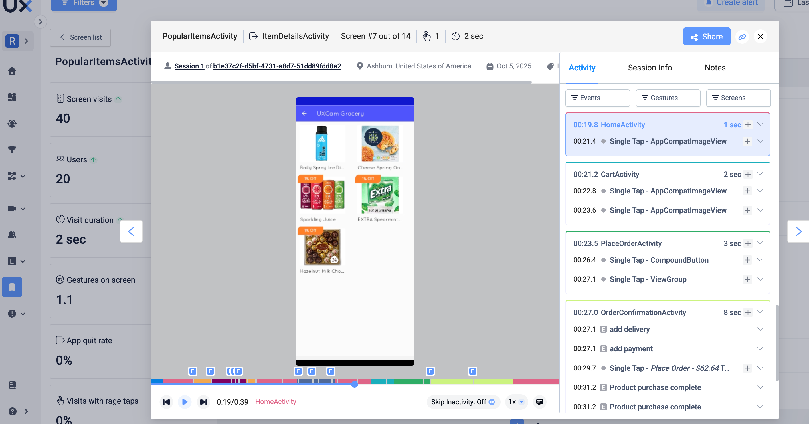 Session recordings. Also known as session replay, this method allows you to view the user's experience and journey from the moment they open the app to when they send it into the background or close it.