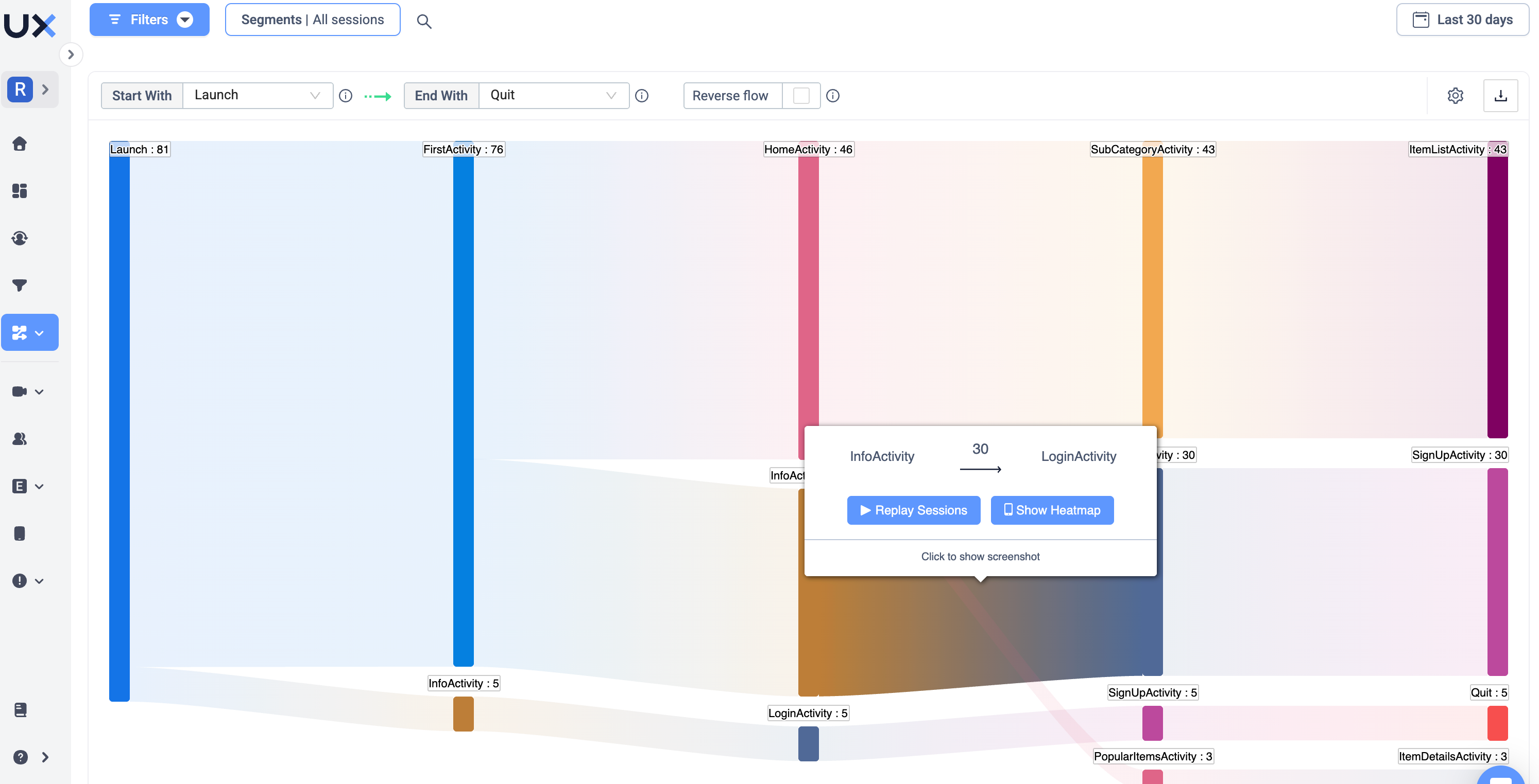 Behavioral screen flow. Screen flows validate funnels, prove your hypotheses, or show what unexpected paths users take in your app.