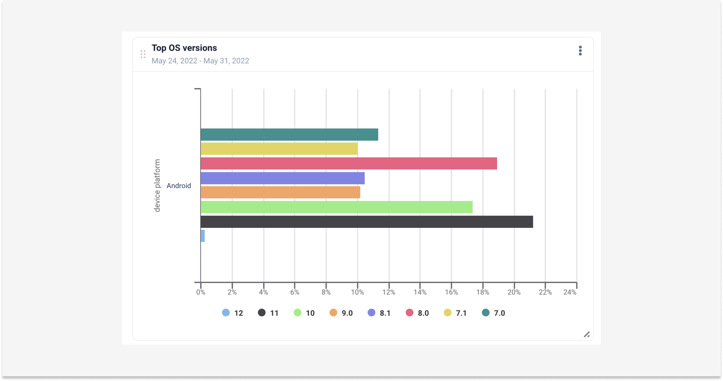 O rastreamento de problemas como congelamentos, bugs e erros permite que você diminua o tempo total entre o teste e a solução, correlacionando problemas com outros fatores como tipos de dispositivos e versões do sistema operacional em escala.