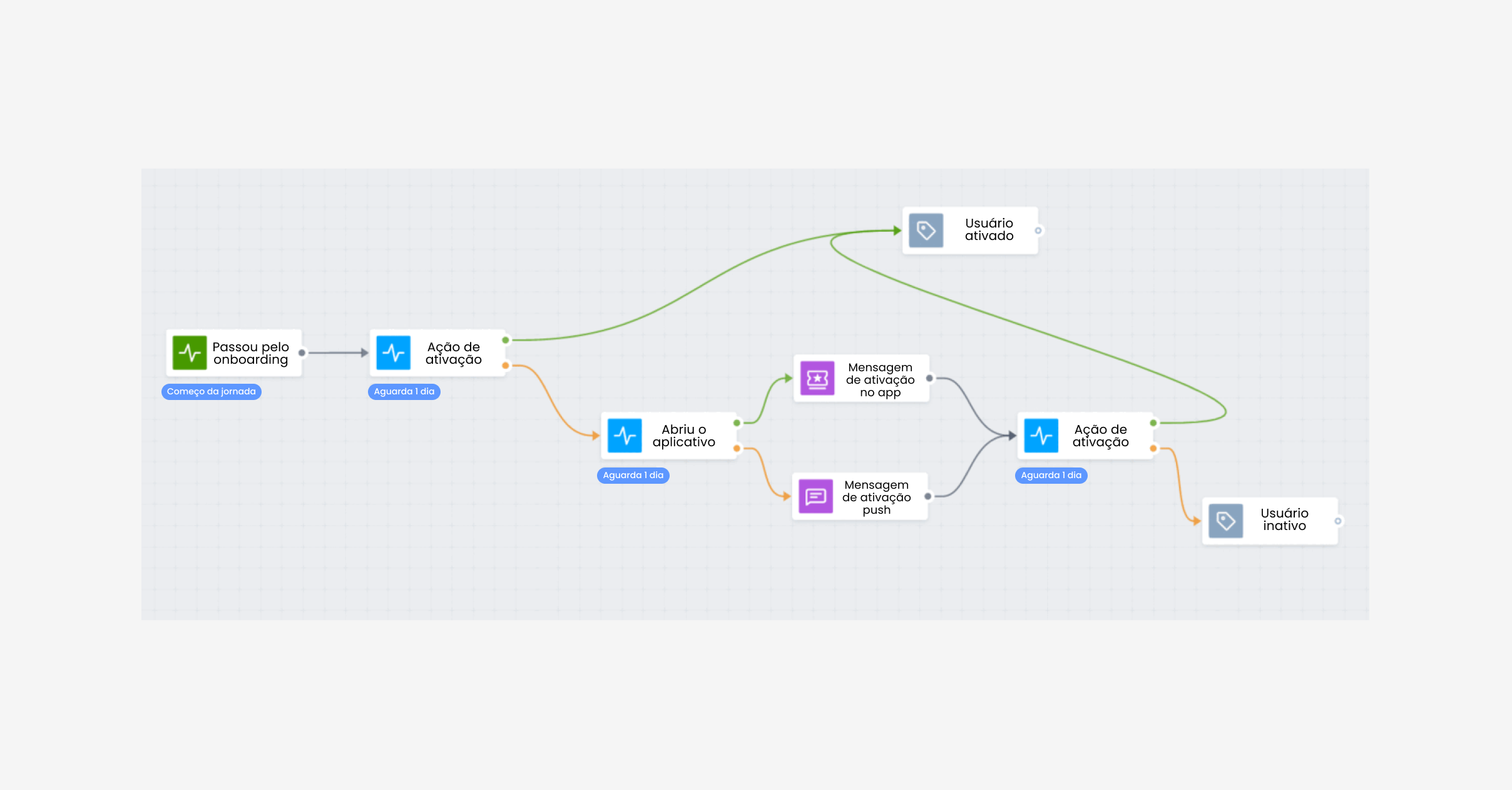 Jornada de ativação do usuário feita com Pushwoosh Customer Journey Builder