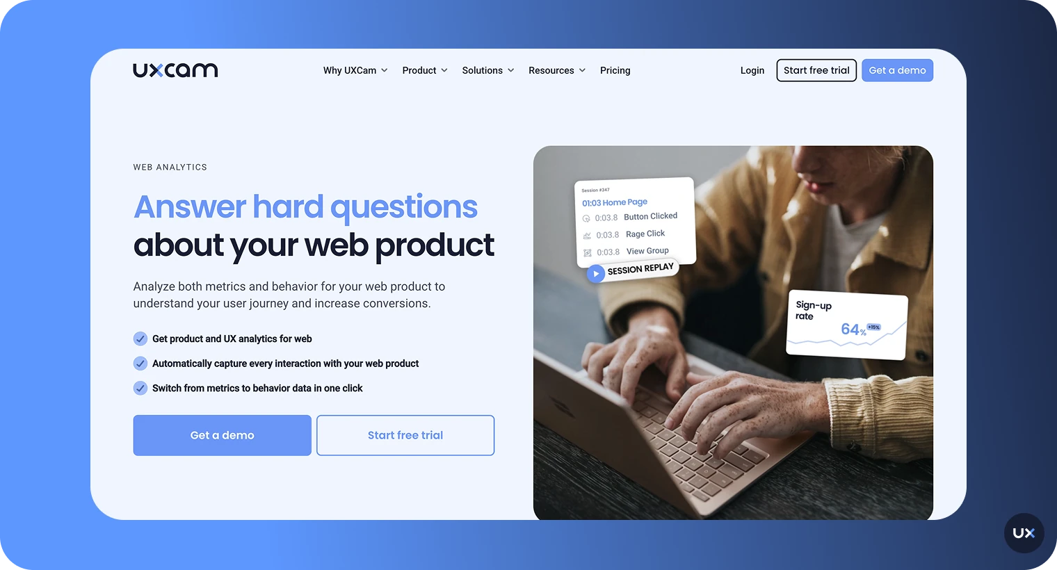 | UXCam | Observar o comportamento real dos usuários com replay de sessão | uxcam.com |