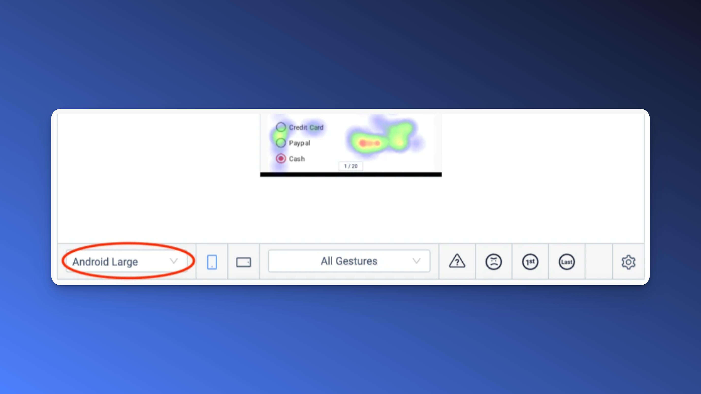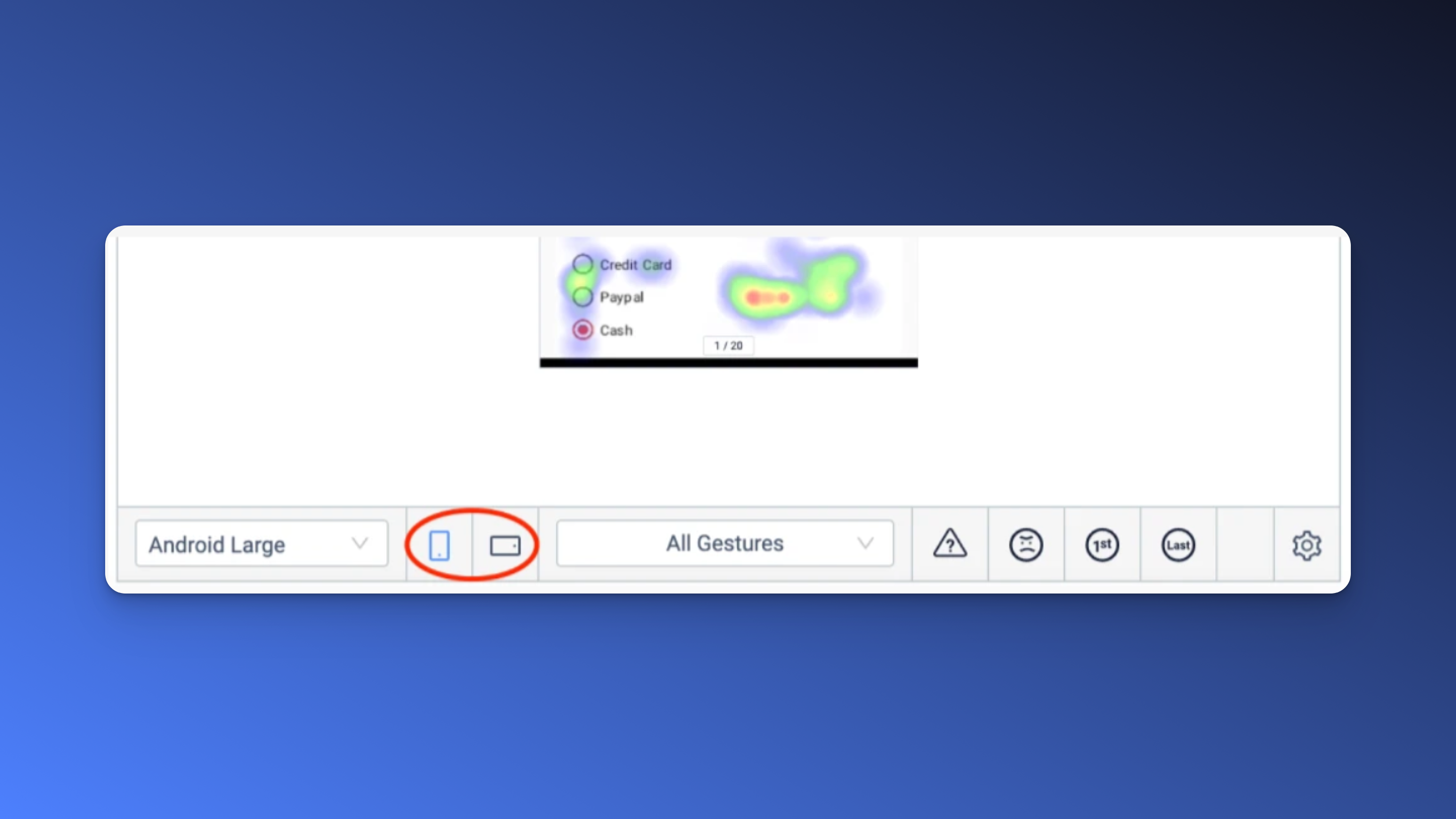 Os usuários podem usar seu aplicativo em modo paisagem ou retrato, e pode haver desafios com essas diferentes experiências. Você pode ajustar o mapa de calor de acordo com a escolha do usuário, e ver como a experiência dos usuários varia quando eles viram o dispositivo.