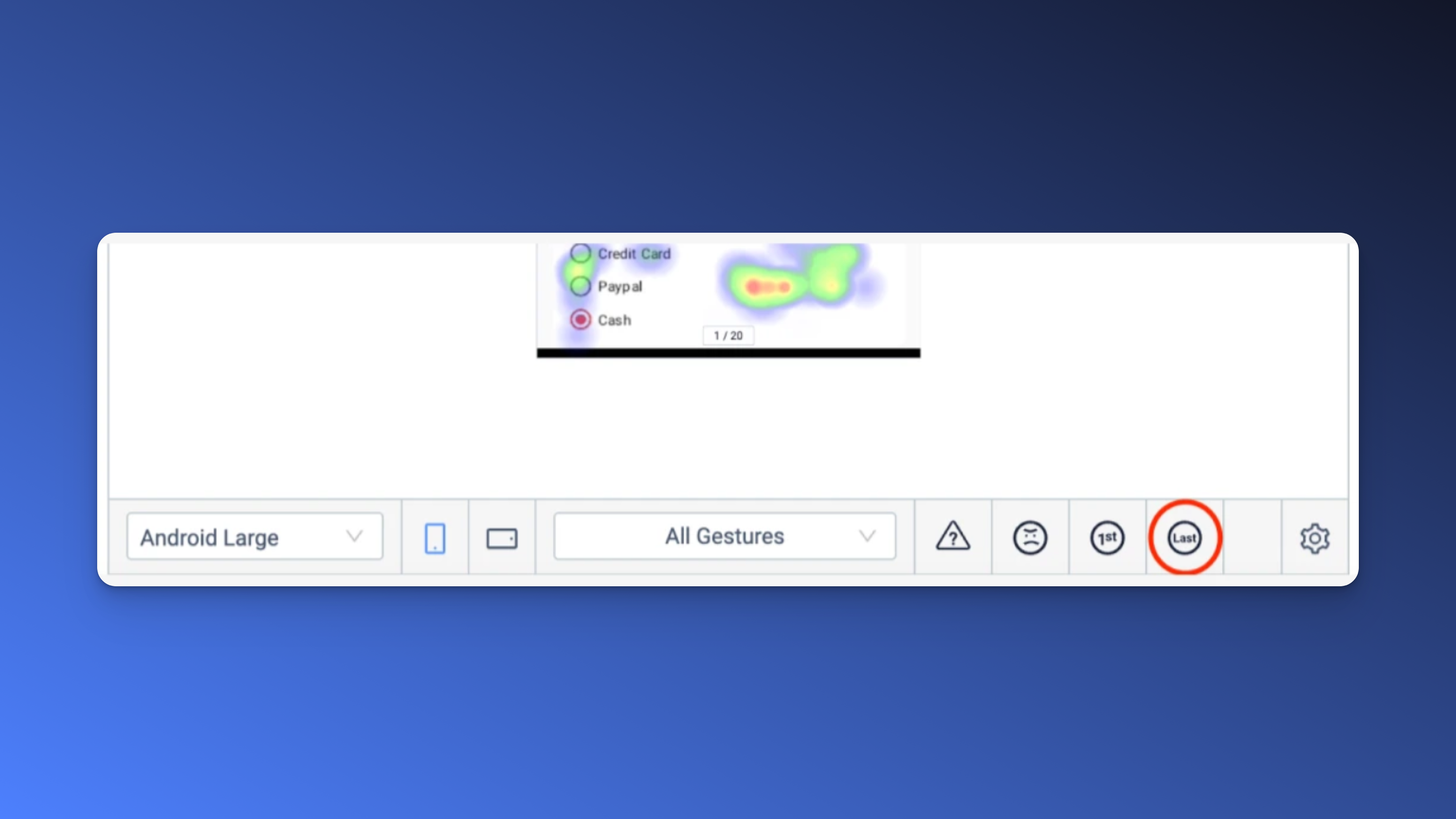 É muito útil saber como os usuários deixam seu aplicativo. Os heatmaps de último gesto permitem que você veja o gesto de saída de cada tela.