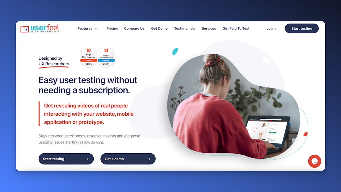 Userfeel es una plataforma de pruebas de usabilidad de pago por uso (PAYG) con acceso ilimitado a todas sus funciones sin necesidad de suscripción, pagos mensuales ni tarifas ocultas.