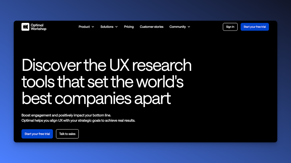 Optimal Workshop se especializa en pruebas de arquitectura de información y ofrece herramientas avanzadas para pruebas de usabilidad remota e investigación de usuarios.