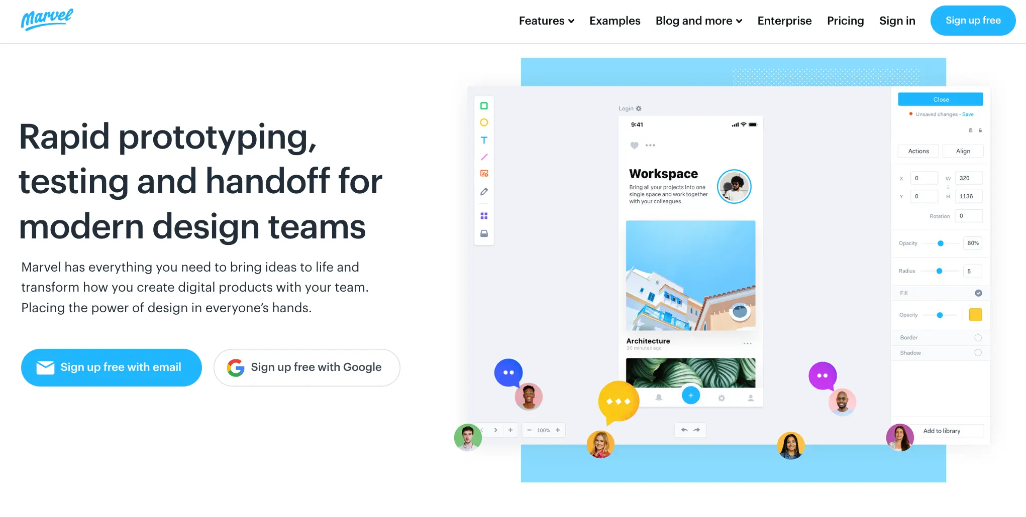 Marvel ofrece herramientas intuitivas de diseño y prototipado para wireframing y diseño de productos digitales. Te permite generar especificaciones al instante e integrar aplicaciones de terceros para mejorar tus flujos de trabajo y diseños.