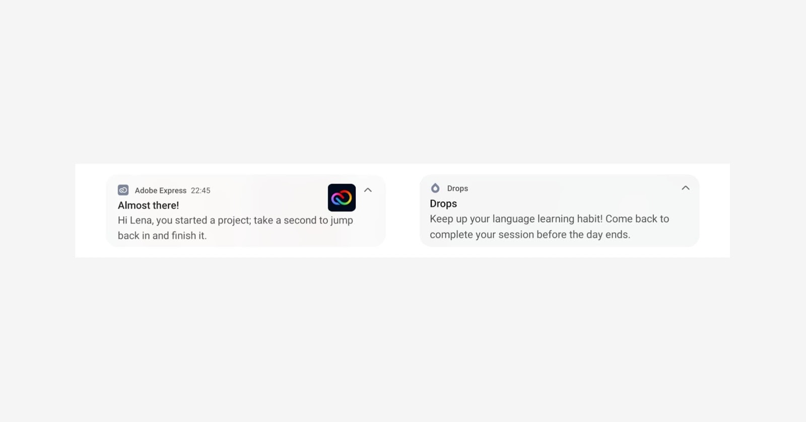 Adobe Express y Drops envían notificaciones push para animar a los usuarios a completar la acción de activación